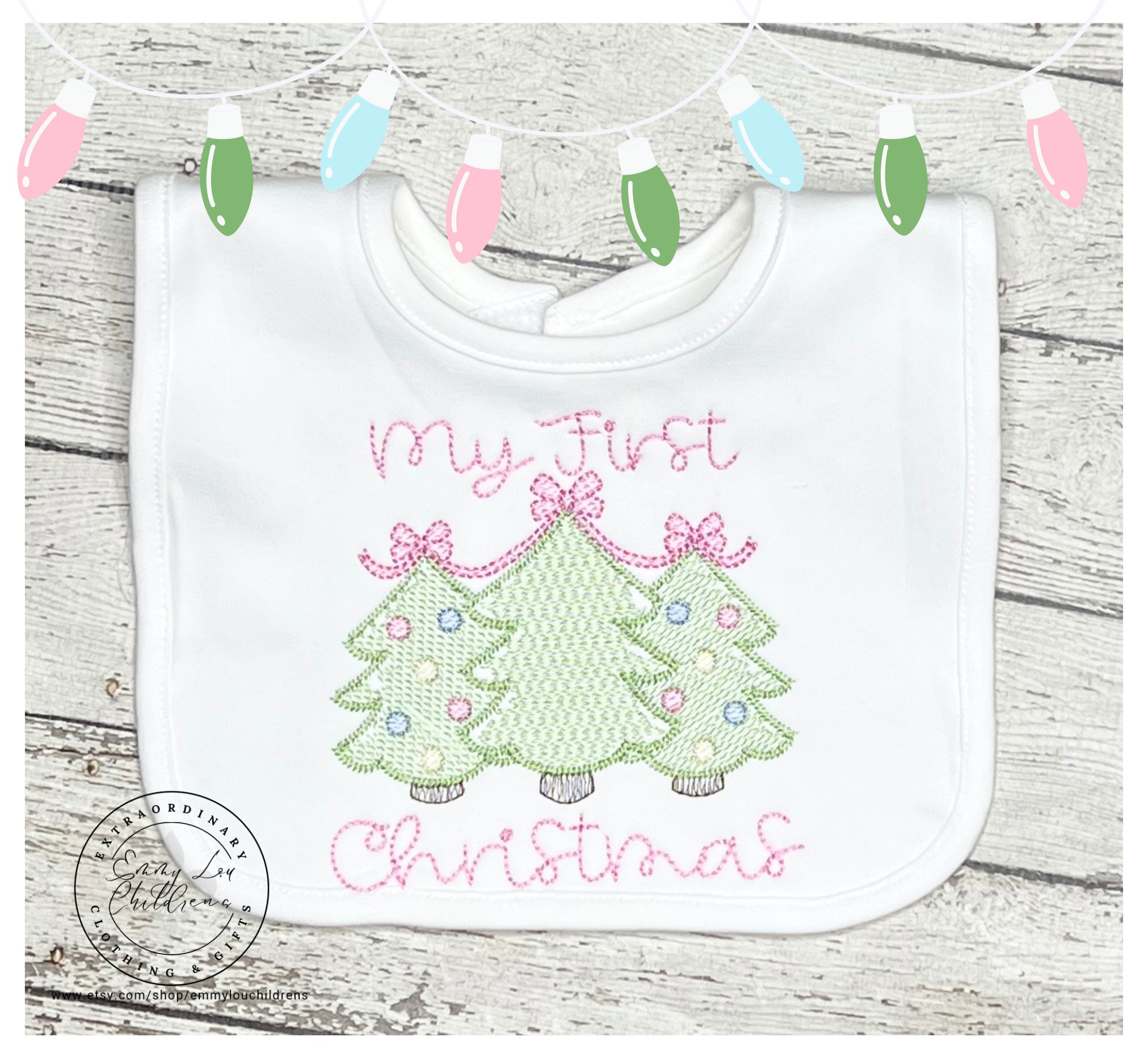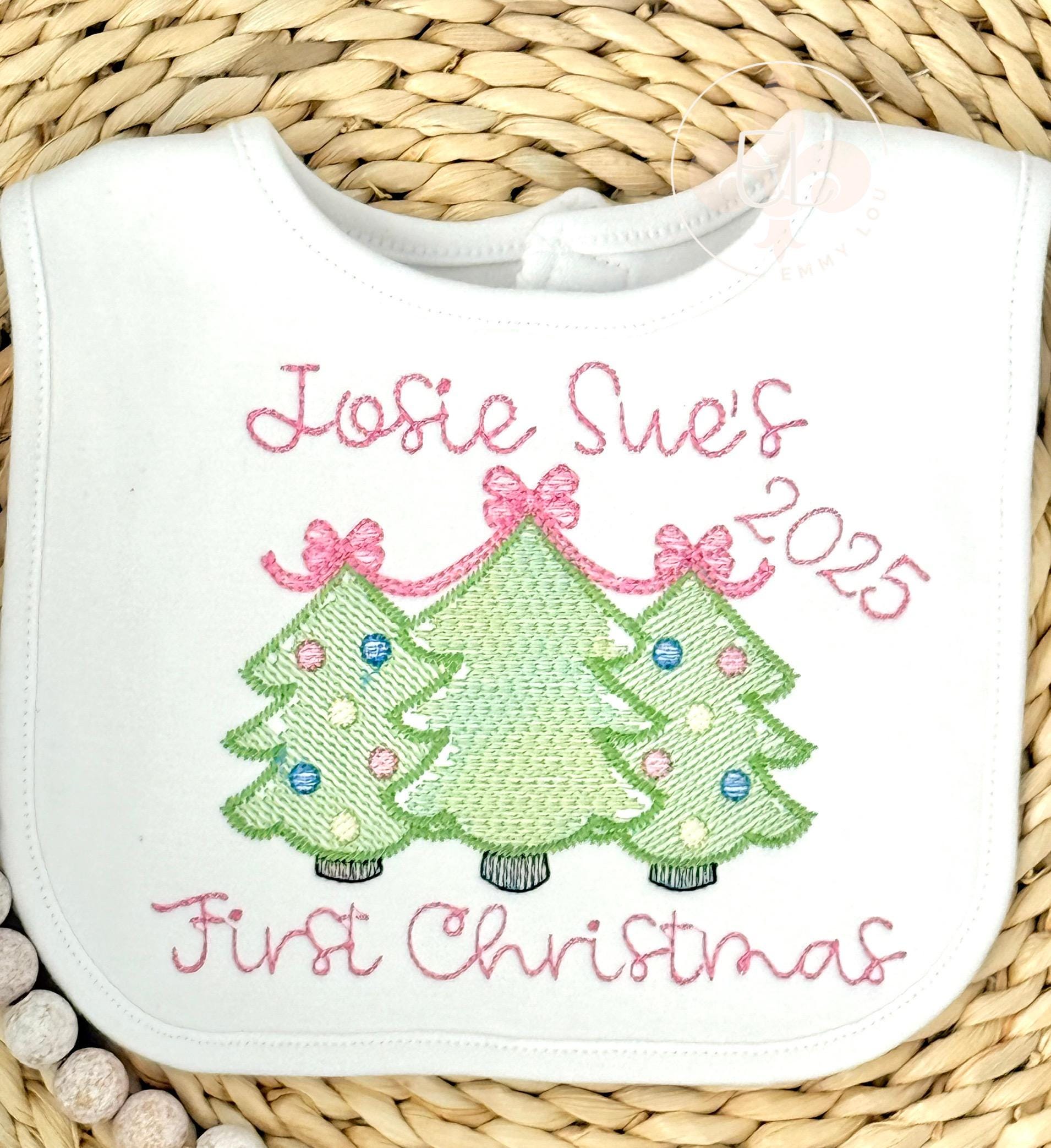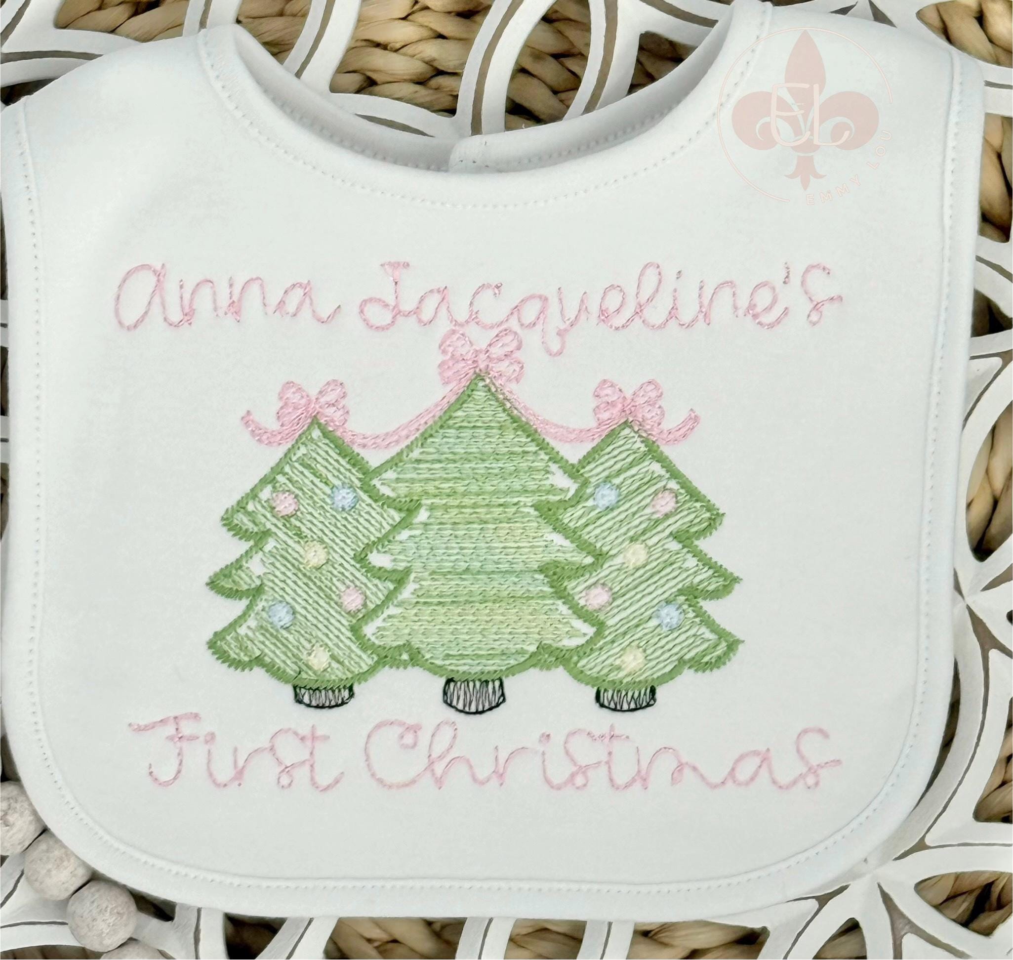 Girls Personalized Christmas Baby Bib, First Christmas Bib, 1st Christmas Bib, Baby's First Christmas Bib