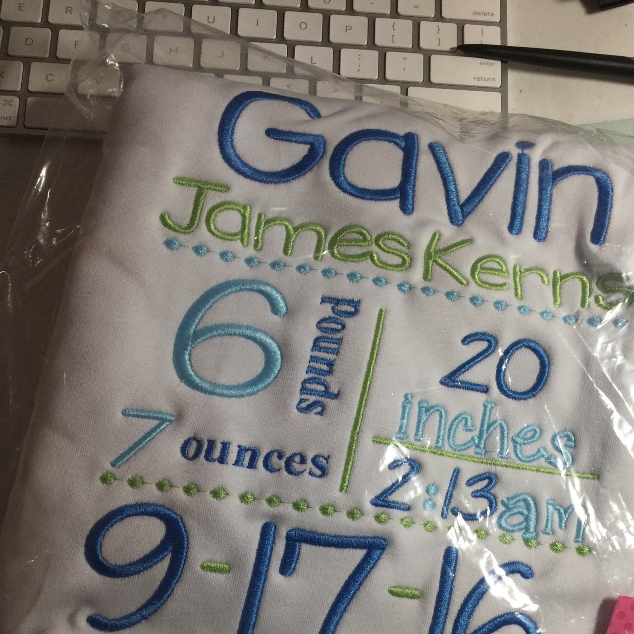 This item came out perfect! Ordered for my newborn nephew for Christmas! I loved it and so did his mom and dad! The item matched the description perfectly and I was sent a proof of the item to ensure everything was spelt correctly! The item exceeded my expectations!