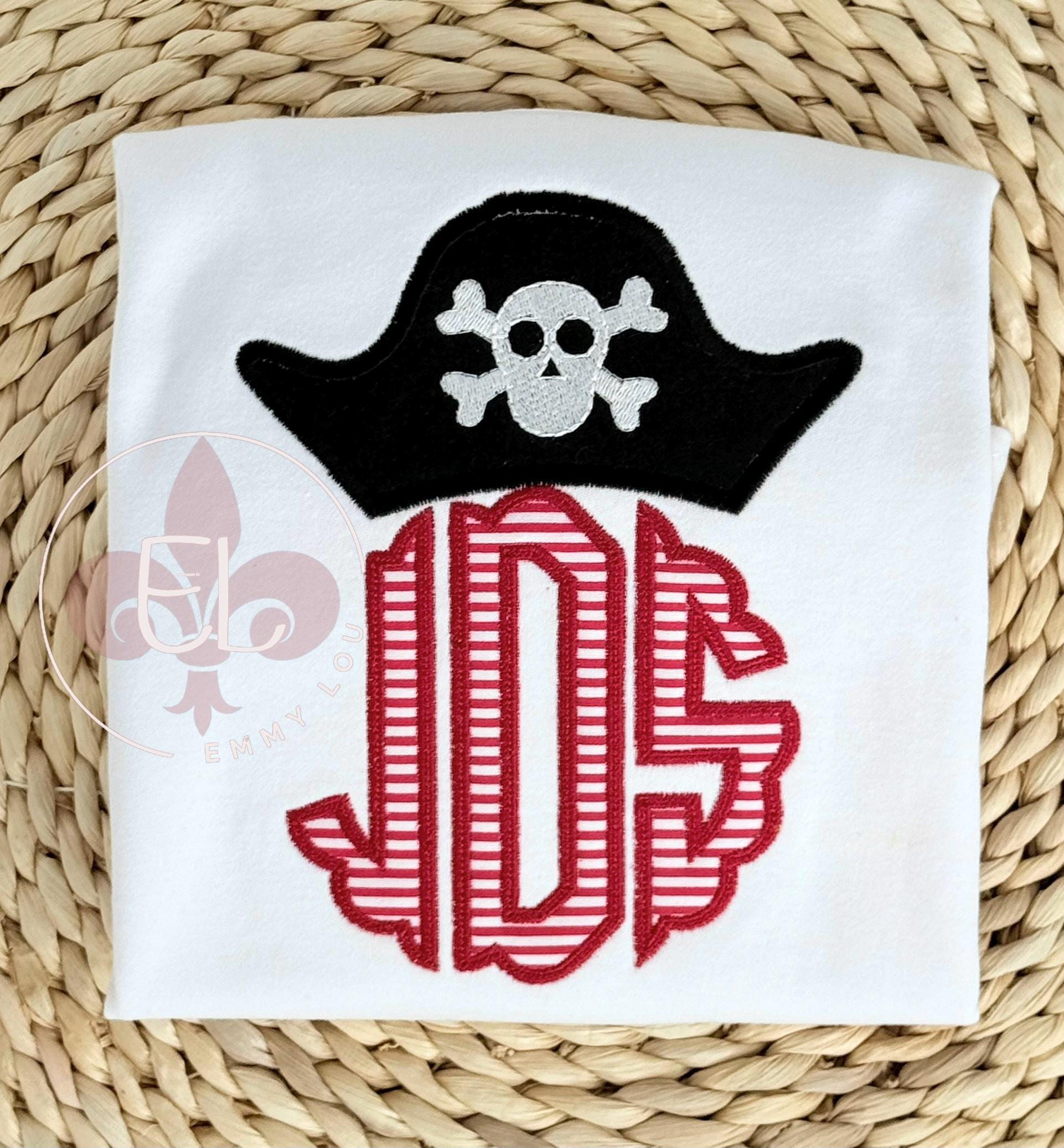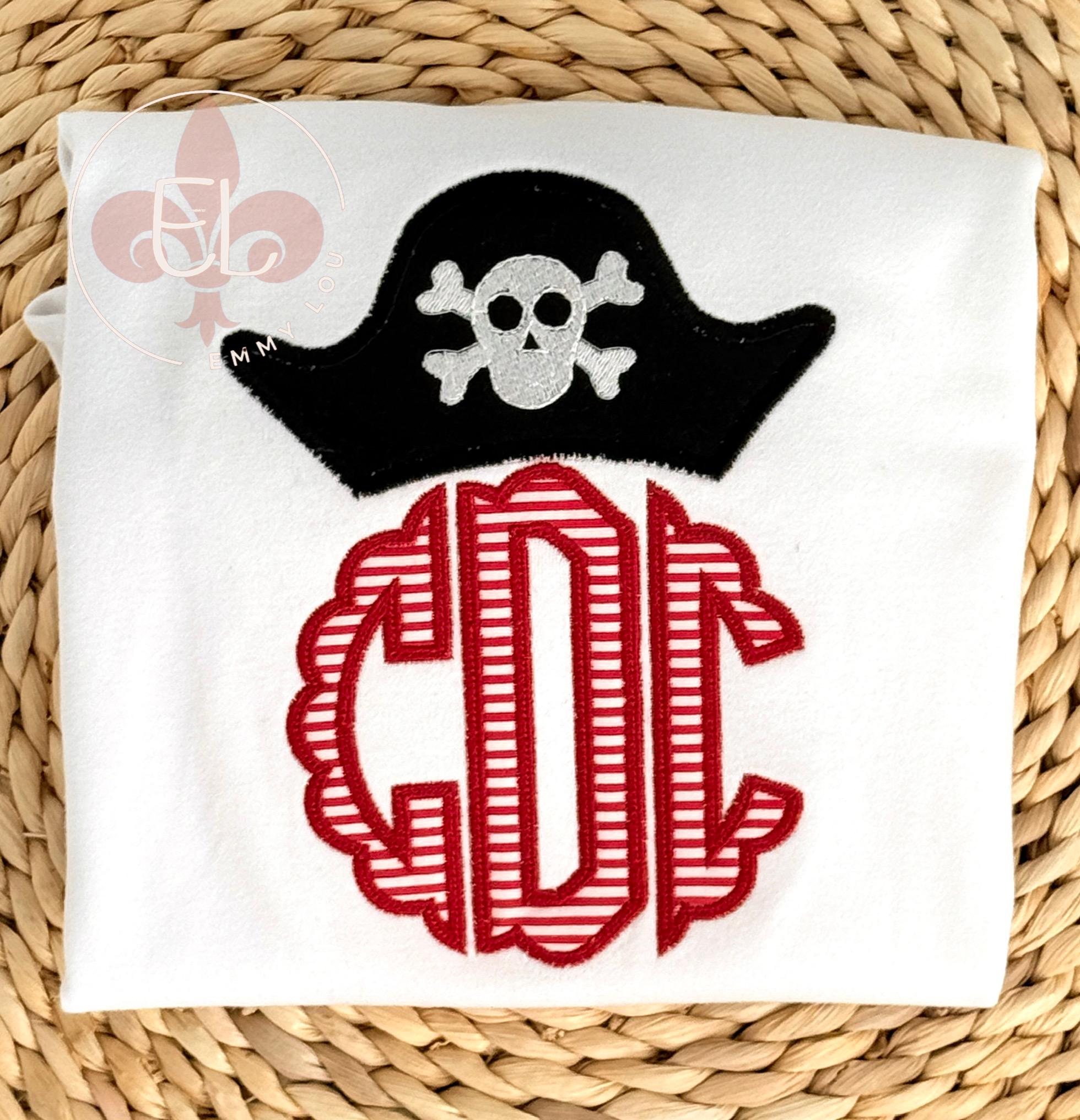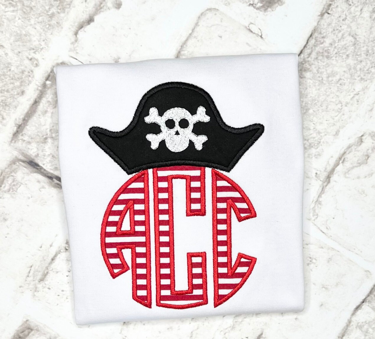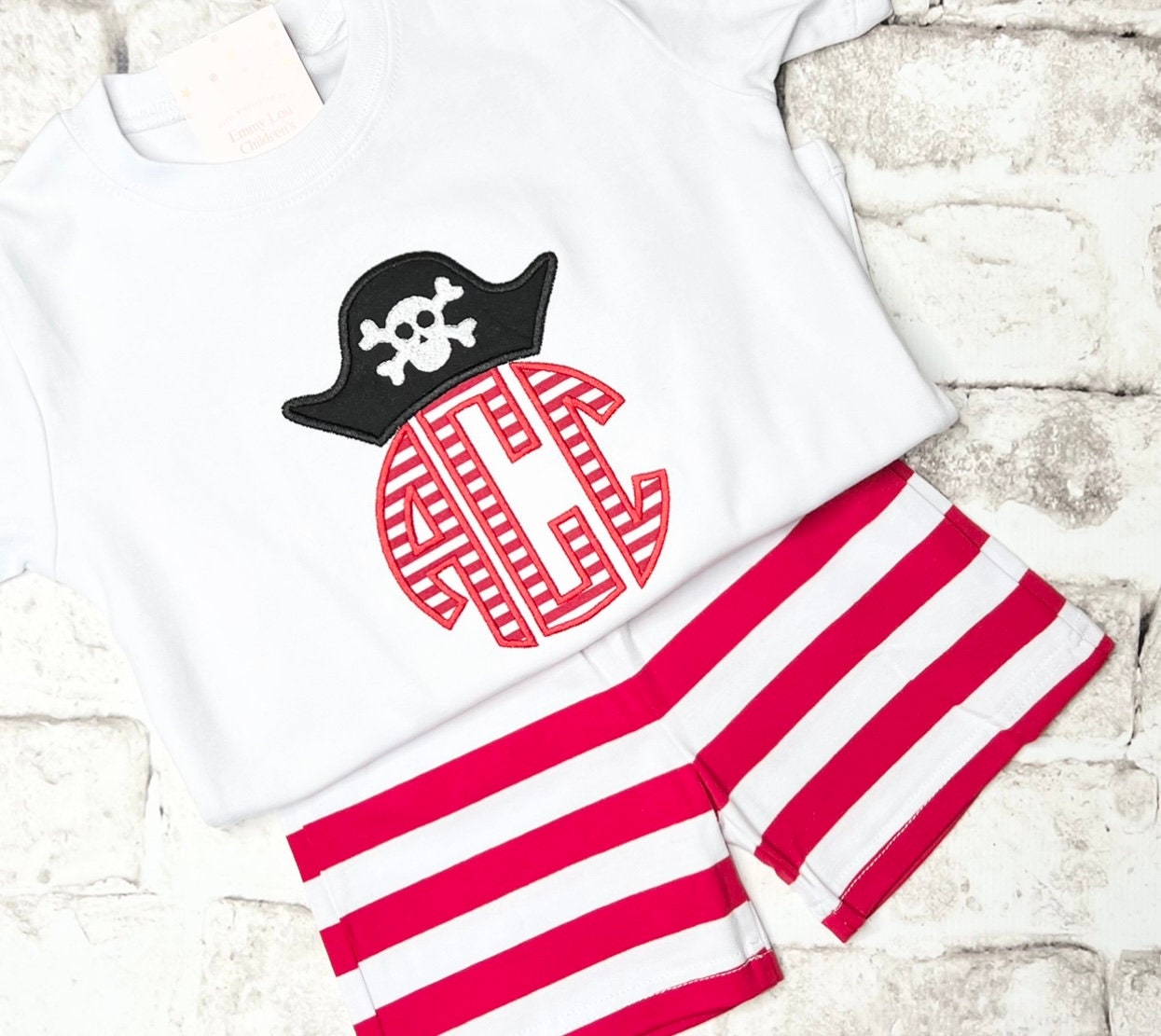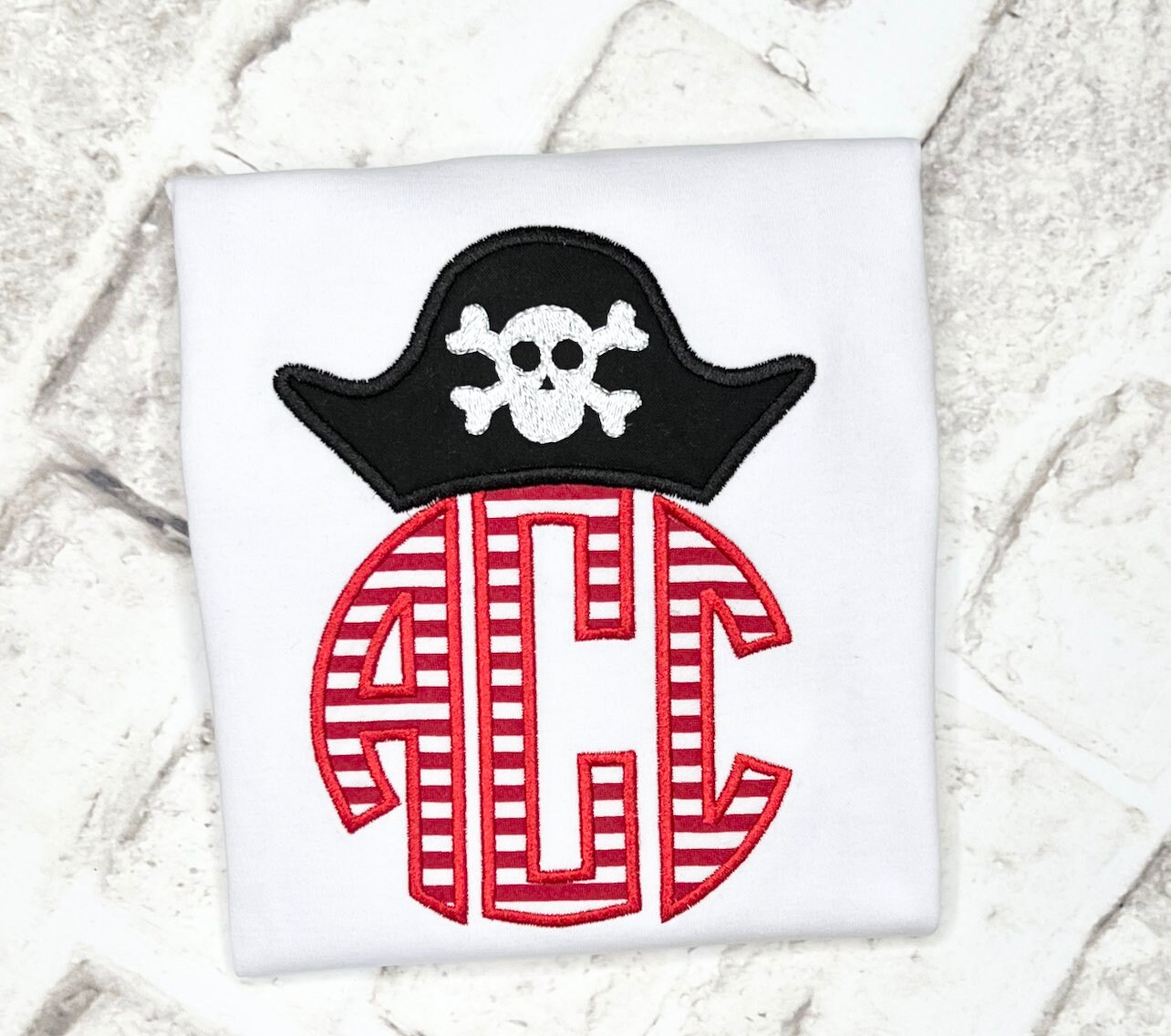Girls Pirate Monogram Birthday Shirt - Girls Embroidered Pirate Shirt